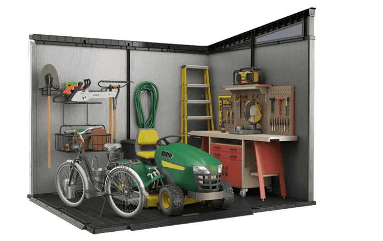 This storage shed offers a modern aesthetic combined with rugged, maintenance-free durability, making it an ideal outdoor storage solution.1